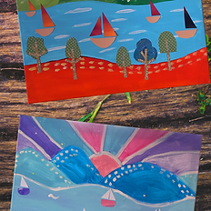 After creating colorful papers, artists will put their papers to work by turning them into clouds, trees, flowers and boats and assemble them onto a brightly colored layered landscape collage.