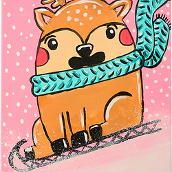 Slide into a playful winter scene featuring a charming forest critter racing down a snowy hill on a sled. This canvas project is full of cozy whimsy and personality, using a simple template to confidently start the drawing and an inspiration sheet of forest friends to spark creativity. Finished with a spray of snowy powder around the sled, each canvas feels lively, expressive, and unique.